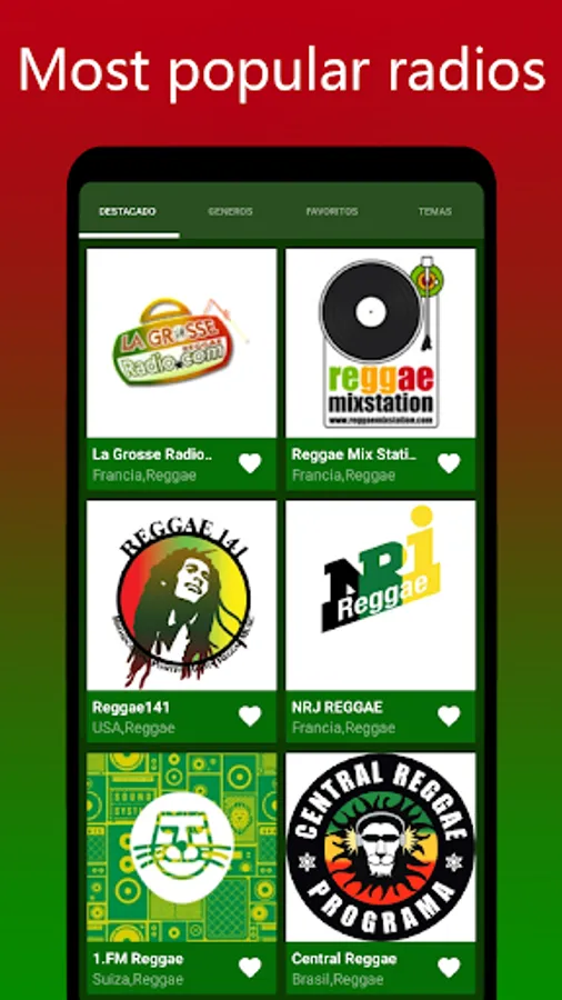 All Reggae Songs allows you to connect to more than 500 All Reggae Radio stations. Now you can listen to your All Reggae Music wherever you are, just by moving a finger.