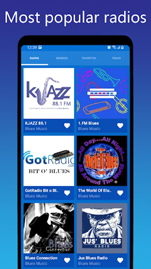 Blues music radio is the best app for Blues music, Blues songs, and many more. We include most Blues Radio Stations broadcast on AM and FM frequencies for all Blues music fans, with live streaming 24/7.