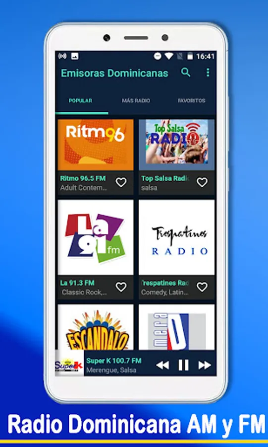 With an easy-to-use, fast and modern interface, Radio Dominicana AM y FM en Vivo offers you the best listening experience, World Dominican Stations without subscription or payment to access the application, Choose what you want to listen to only Dominican Republic radio station am fm is even nicer easy and fast to use..