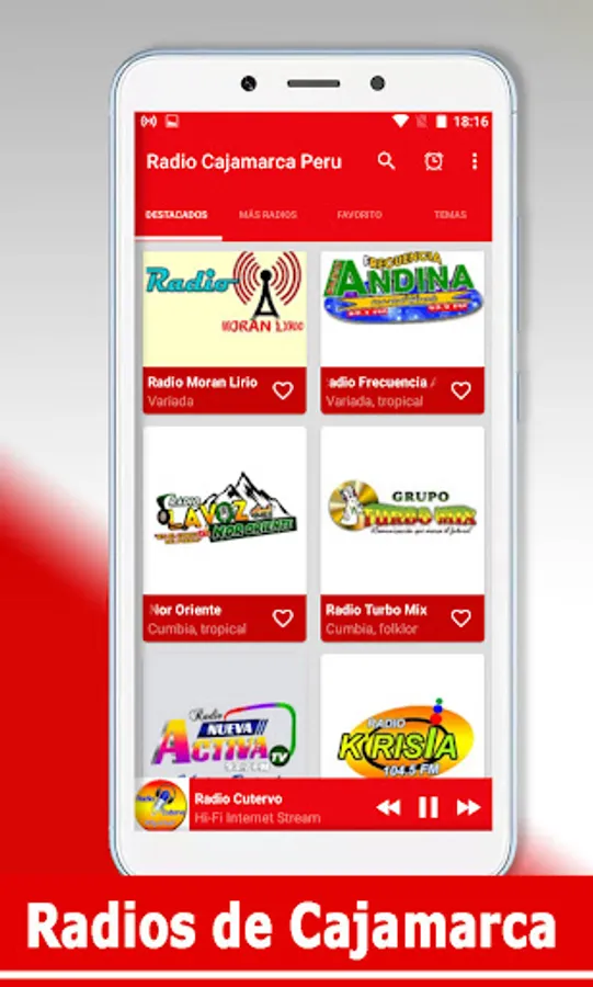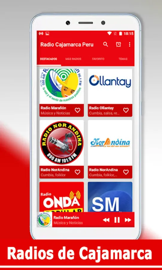With an easy-to-use, fast and modern interface, Radios de Cajamarca Peru live offers you the best Radio Cajamarca listening experience online without a subscription or payment to access the application. Choose what you want to listen to: sports, debates, music, even more nice easy and fast.