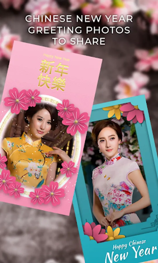 Chinese New Year Greeting Frames app will turn your pictures into a masterpiece. With Chinese New Year Greeting Frames can customize with Chinese new year stickers and as CNY greeting cards via social media. Wide selection Chinese New Year photo editor design and styles to choose. Celebrate Spring Festival and express your love for your loved ones wish Happy Chinese New Year. These lovely pictures will show them your care and will make them smile. You can set as Chinese New Year wallpaper.
