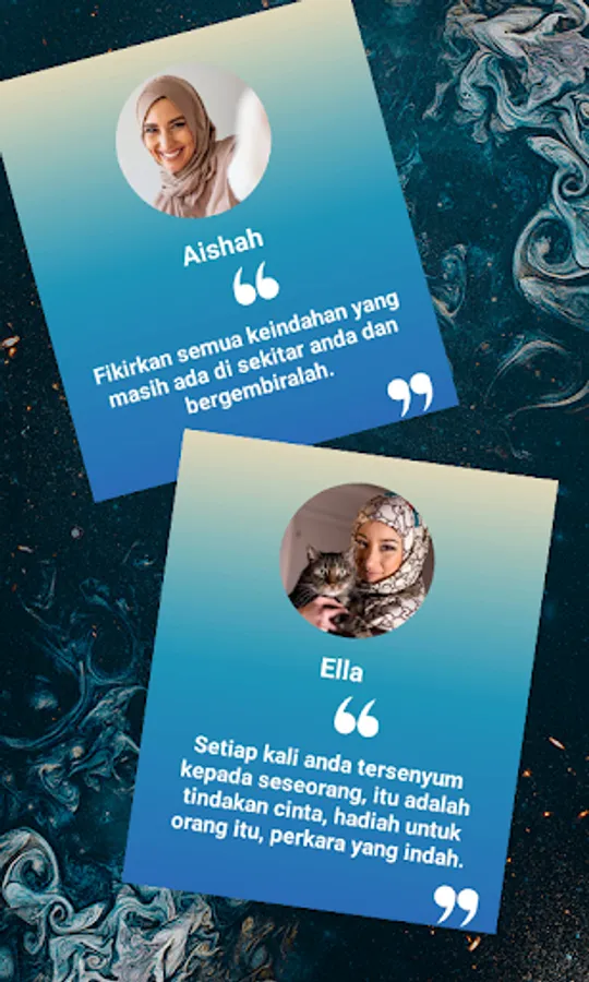 Hijab is worn as a headscarf by Muslim women using pashmina, shawl or lace to cover their hair and head. Modesty is the jewel of a woman. With Hijab Photo Editor it will let you see your your immediate transformation by just placing your face in hole in this hijab photo montage maker. You can personalize and express yourself using fun stickers. There are also inspirational quotes available where you can personalize it by inserting your photo and name. Share all of these creative photos and greetings via Hijab Photo Editor.