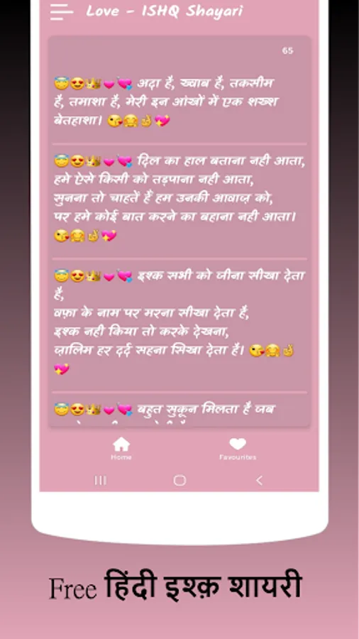 It is a free app and contains 1000+ ishq, pyaar, love shayaris in Hindi. हिंदी प्यार शायरी App।