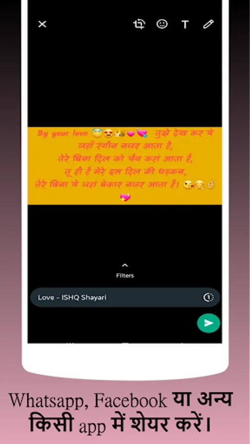 Whatsapp या किसी भी अन्य अप्प से शेयर करे। शायरी का बैकग्राउंड और टेक्स्ट कलर चेंज करें !
