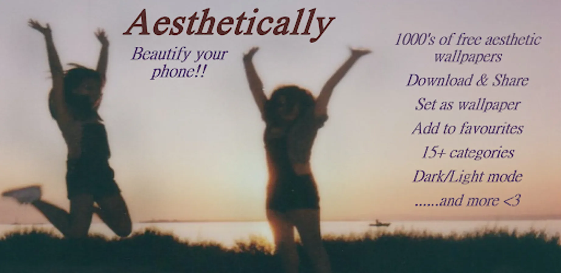 "Aesthetically" is a free version of our premium aesthetically app! Explore 1000's of free aesthetic wallpapers from various categories and personalize your home and lock screen! Having an aesthetic look gives a sense of satisfication and now you will not have to look at any boring wallpaper <3