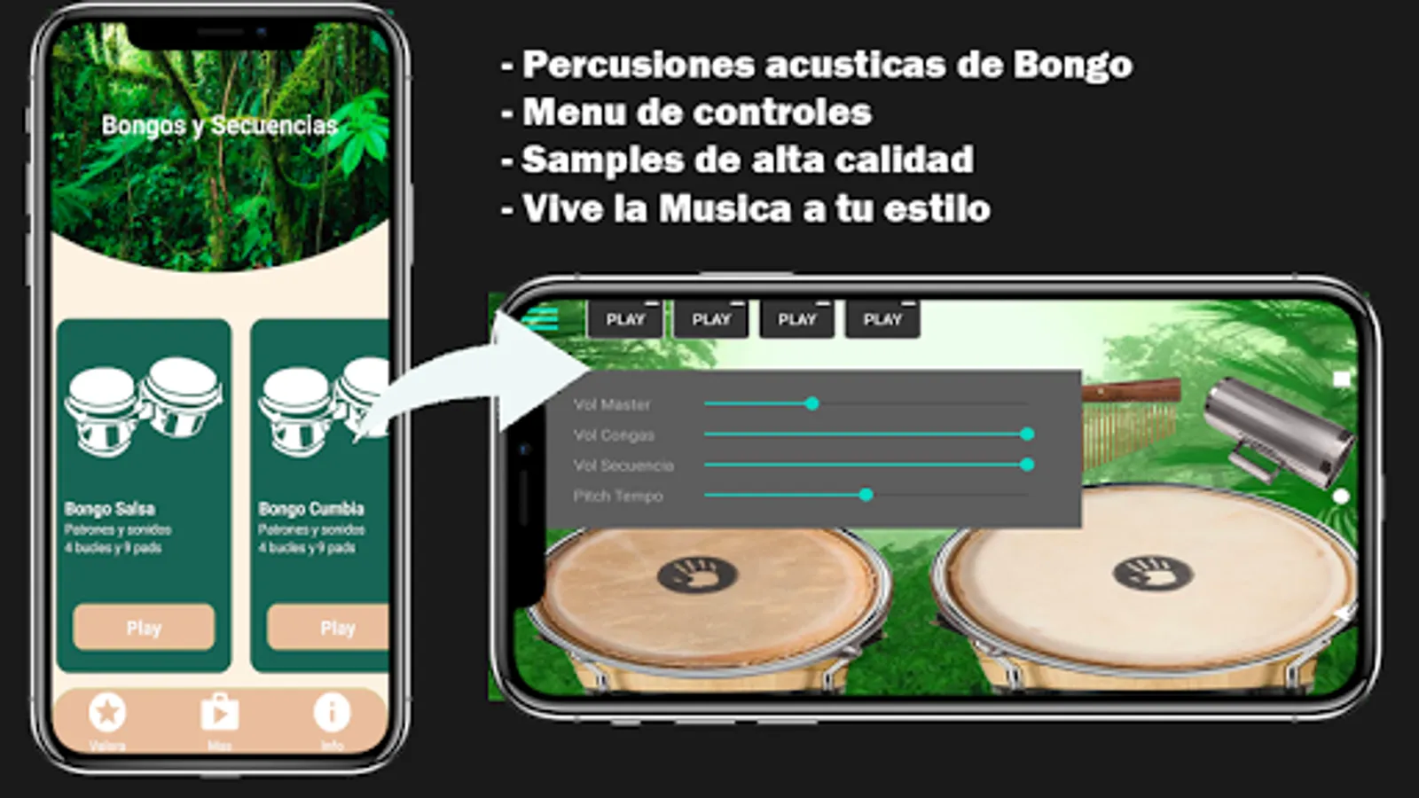 Live music at its best with natural and high quality Bongos sounds guided by accompaniment patterns for better learning and a new way of learning to play the Bongos, Contains: