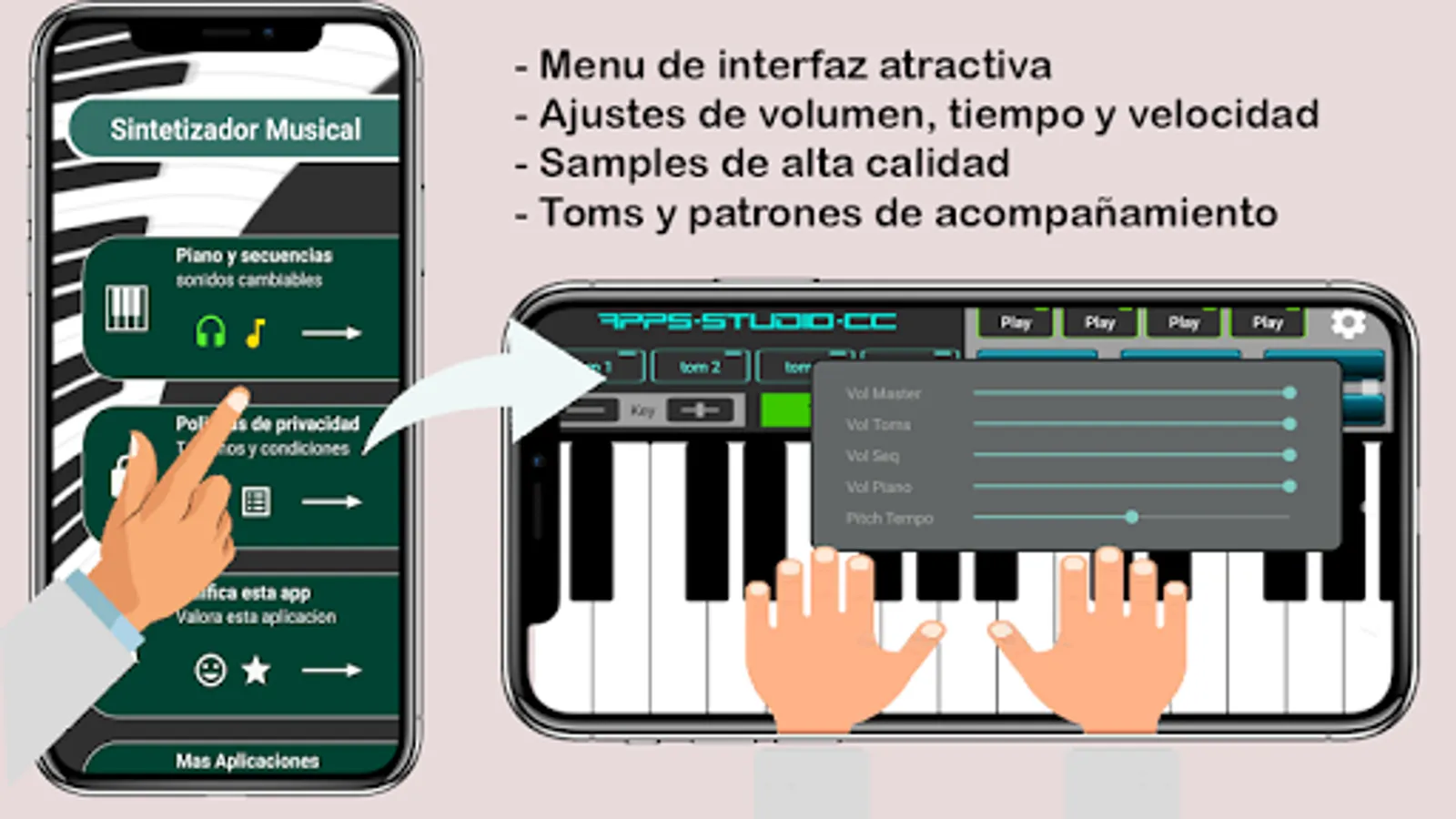 Musical Synthesizer is a piano, electronic organ, synthesizer and percussion application and is designed for music lovers who want to learn and practice melodies, it contains: