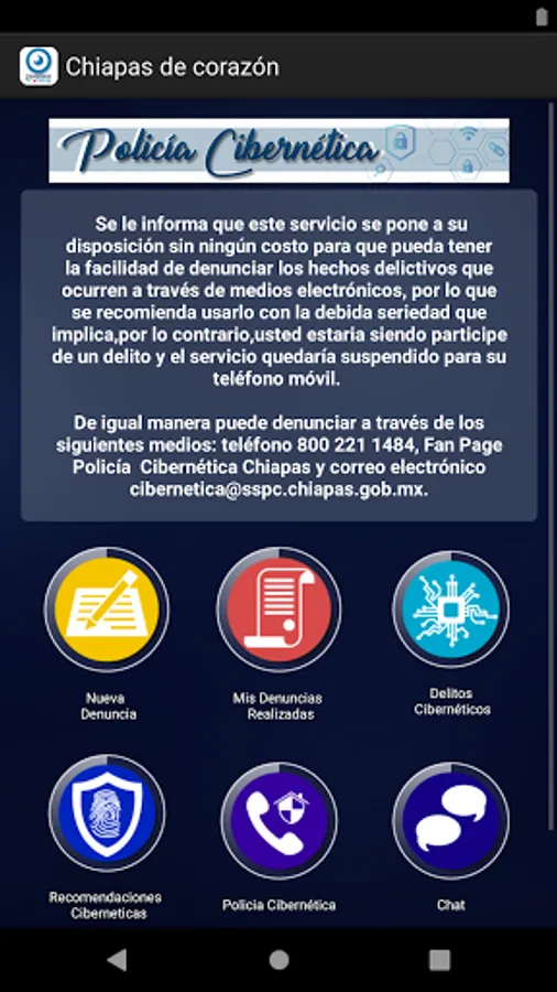 Due to the growing demand for agile and efficient services on the part of the Chiapaneca Society, together with the increase in modern communication and information technologies, they result in the need to have computer systems, which contribute to institutional activities; For this reason, the Secretariat of Public Safety and Citizen Protection offers the application "CIUDADANO VIGILANTE". In which you will find various services aimed at prevention, personal and family safety.