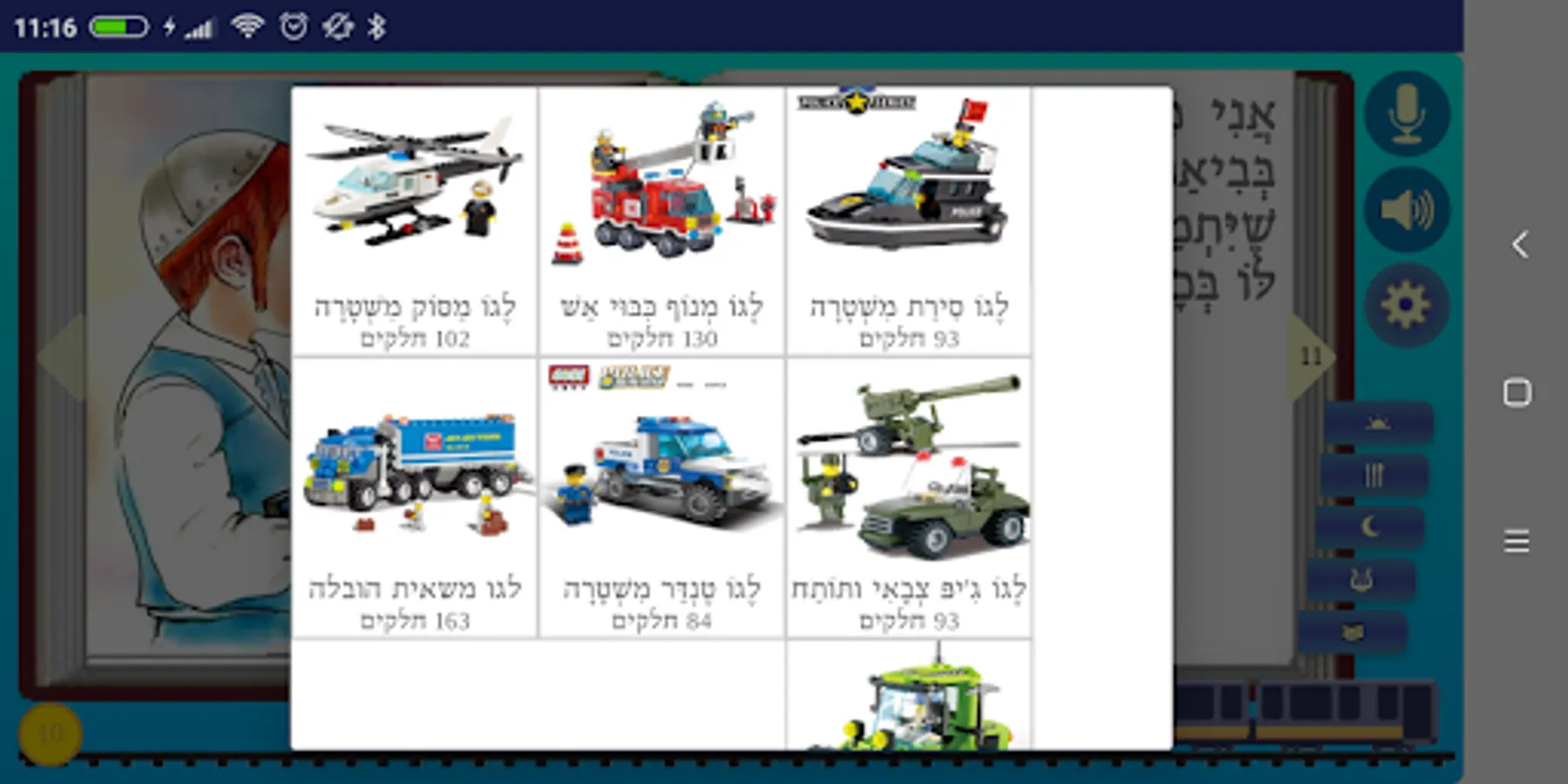 The child presses the record button and begins to pray. The app recognizes his speech and emphasizes the words he said in the body of the prayer book. When the child has finished the page he receives several coins. If the child has accumulated 1000 coins he can choose a prize in the prizes screen.
