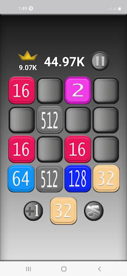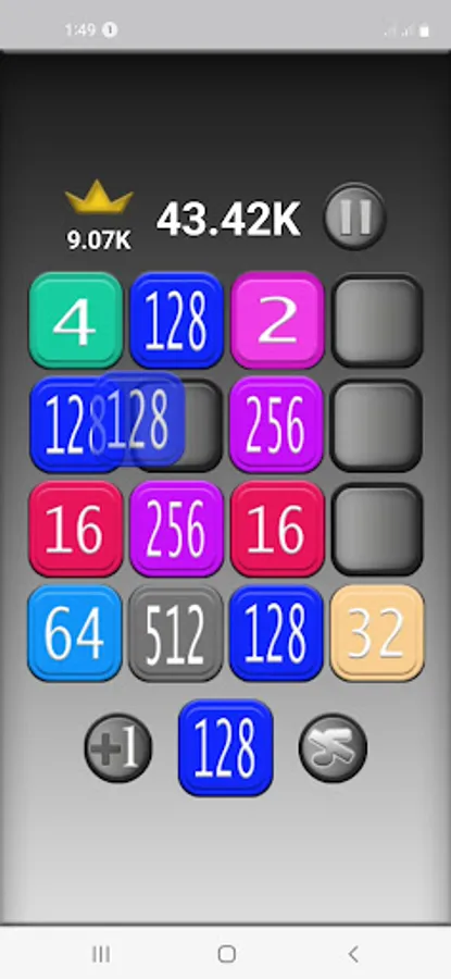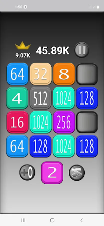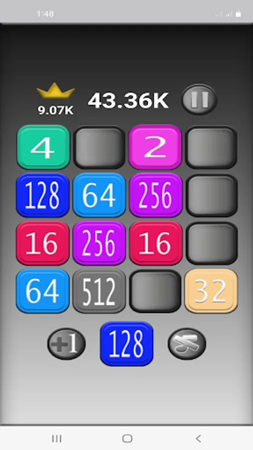 Try to reach 2048. All tiles around the number will disappear with a high score value.