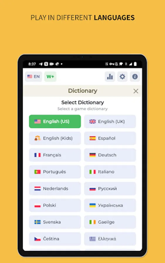 ● 18 Languages (English (US), English (UK), Español, Français, Deutsch, Português, Italiano, Nederlands, Русский, Polski, Українська, Svenska, Gaeilge, Čeština, Ελληνικά, Türkçe, Bahasa Indonesia, Filipino)