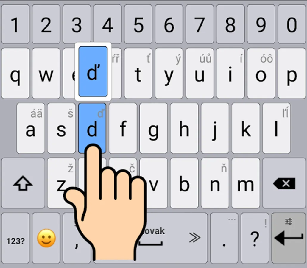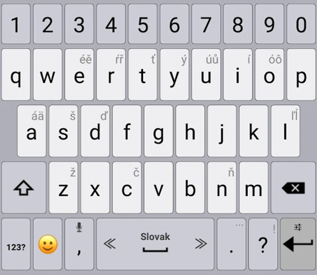 For using the Slovak (slovenský) Language Pack, you need to Install an AppsTech's keyboard first, and then select the Slovak language from the keyboard settings.