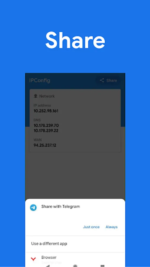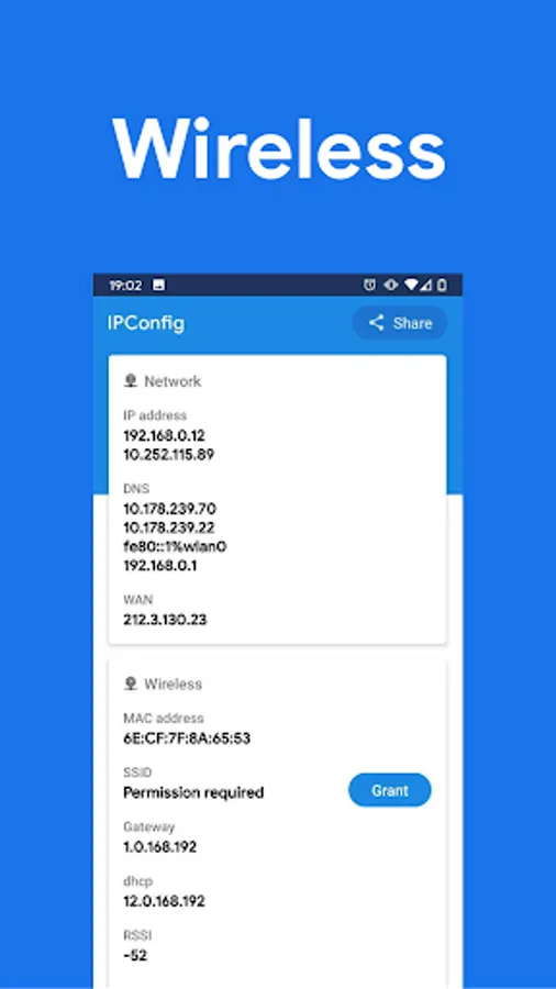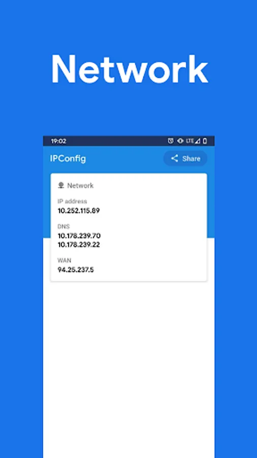 When the network is connected/changed, the data is updated automatically and all information can be saved in notes or sent to a messenger.