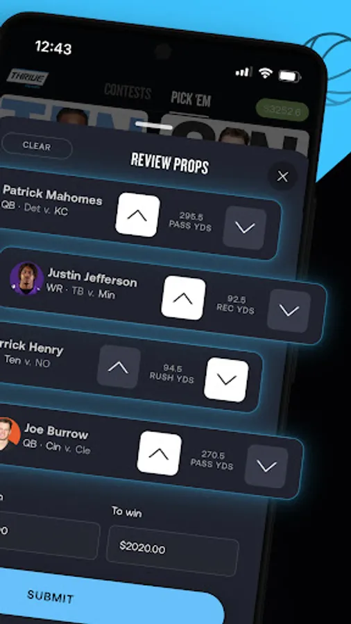 ThriveFantasy is Daily Fantasy Sports (DFS) with Over Under player props. Our game concept is simple, fast and gives you a shot at winning real cash prizes playing your favorite fantasy sports.