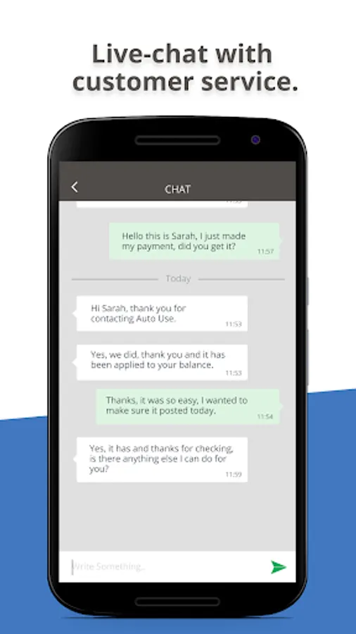 Make and schedule your Auto Use payment in real-time. The Auto Use App is the easiest way to make your payment, see your payment history, and chat with your provider. It's fast and easy.
