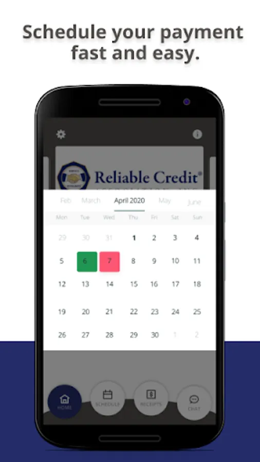 Make and schedule your Reliable Credit payment in real-time. The Reliable Credit App is the easiest way to make your payment, see your payment history,