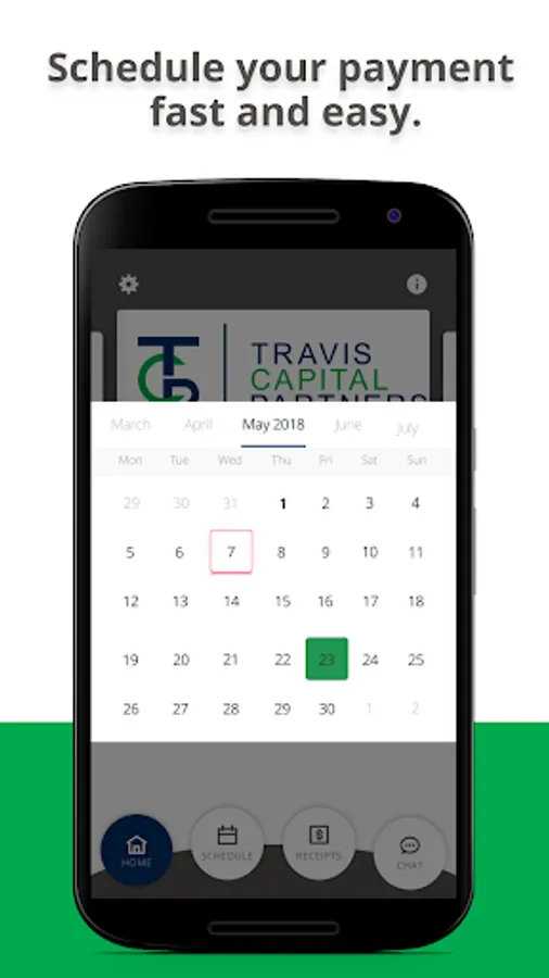 Make and schedule your Travis Capital Partners payment in real-time. The Travis Capital Mobile Partners App is the easiest way to make your loan payment, see your payment history