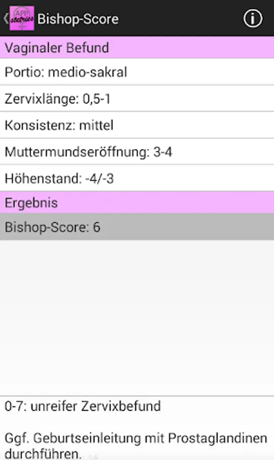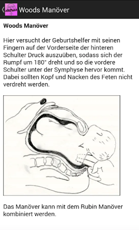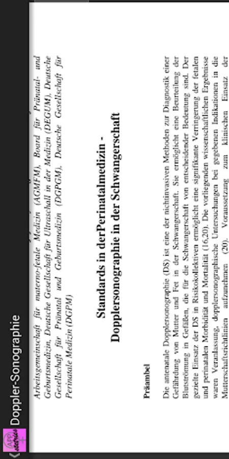 APPstetrics offers a lot of practice-relevant options in obstetrics. Different scores, as Bishop, Apgar, FIGO CTG, fishing or Quintero can be determined quickly and clearly. A Biophysical Profile can be determined. Also two VBAC (vaginal birth after cesarean) -Kalkulatoren are integrated into the app. Doppler sonographic values are represented in both percentiles and graphically. An assessment of numerous fetal biometric parameters is also possible. In addition, over 30 formulas for fetal weight estimation are integrated. A comprehensive pregnancy calculator allows next to the date of the last period to calculate the date of conception and the calculated date of confinement and the current gestational age or an arbitrary date and possibly also compare with the date as Scheitelsteißlänge or biparietal diameter. APPstetrics contains practical instructions and illustrations on topics such as fetal infection ionenes (including CMV, rubella, herpes, varicella, chlamydia, parvovirus B19, toxoplasmosis), gestational diabetes, postpartum atony, fetal arrhythmia, amniotic fluid volume, HIV in pregnancy, shoulder dystocia, breech, hypertensive disorders of pregnancy , of pregnancy, micro blood analysis and U1. The Lung-to-head ratio in fetal diaphragmatic hernia can be calculated to assess the outcome of the fetus. Guidelines obstetrics can be called directly from within the app via the website of the AWMF.