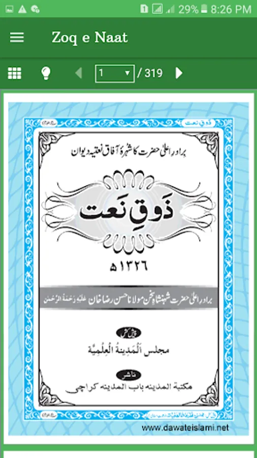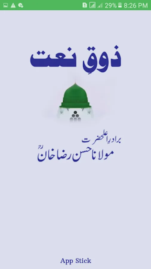 This application contains a book of Imam Hassan Raza Khan (R.A), Name is Zoq e Naat. This book is the collection of Hamd, Naat and many other manqabats.