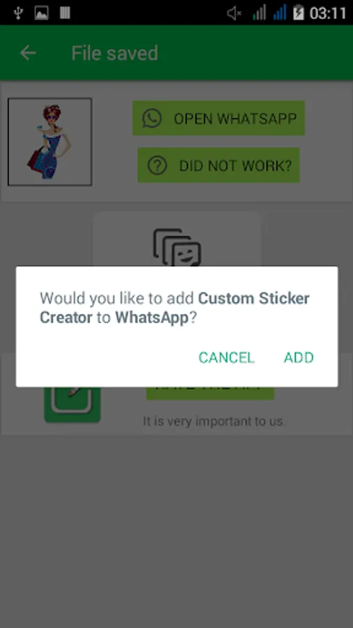 7. Click Add to What to add and use this personal stickers for Whats