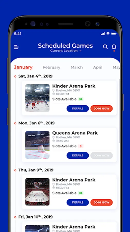 Create an account. Set your skill level. Search your desired location. Sign up for upcoming games or post a new game at your local arena.