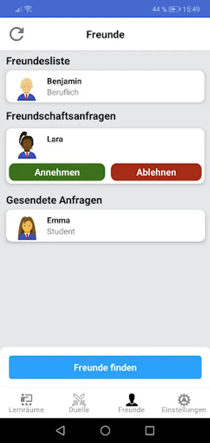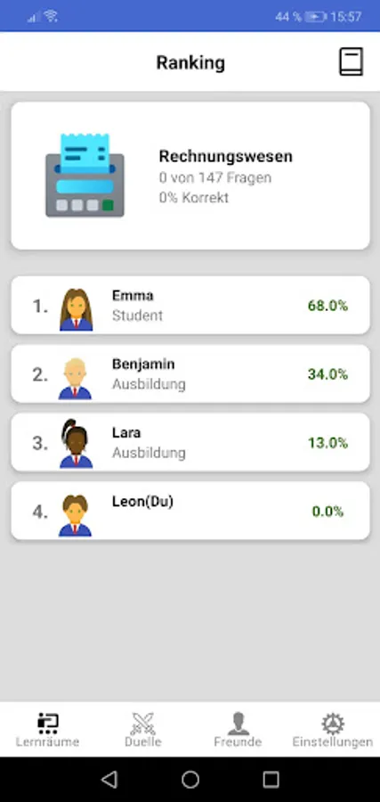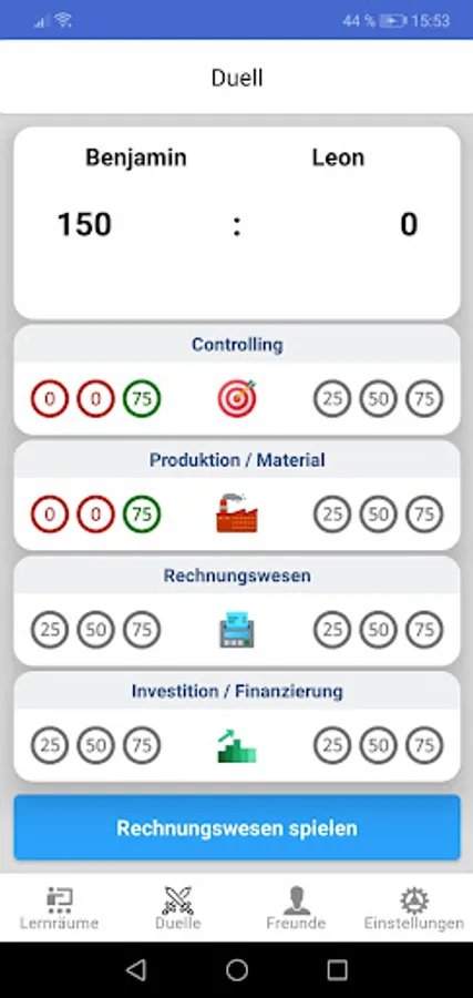 - Knowledge transfer of all relevant modules of a business administration degree through quiz function or learning room