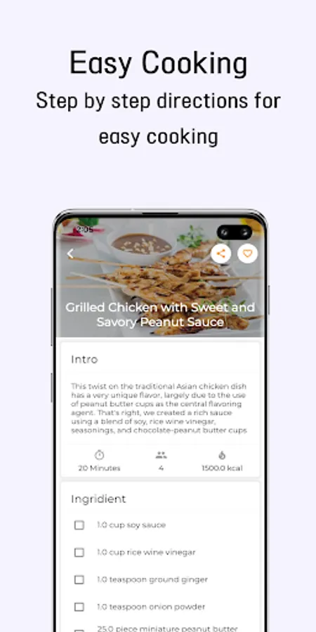 - Mark as favourite allows you to get your favourite recipes easy and quick.