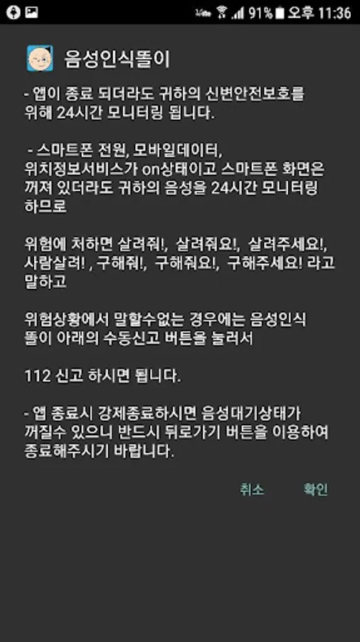 It is an app that recognizes voice and recognizes dangerous situations to report 112
