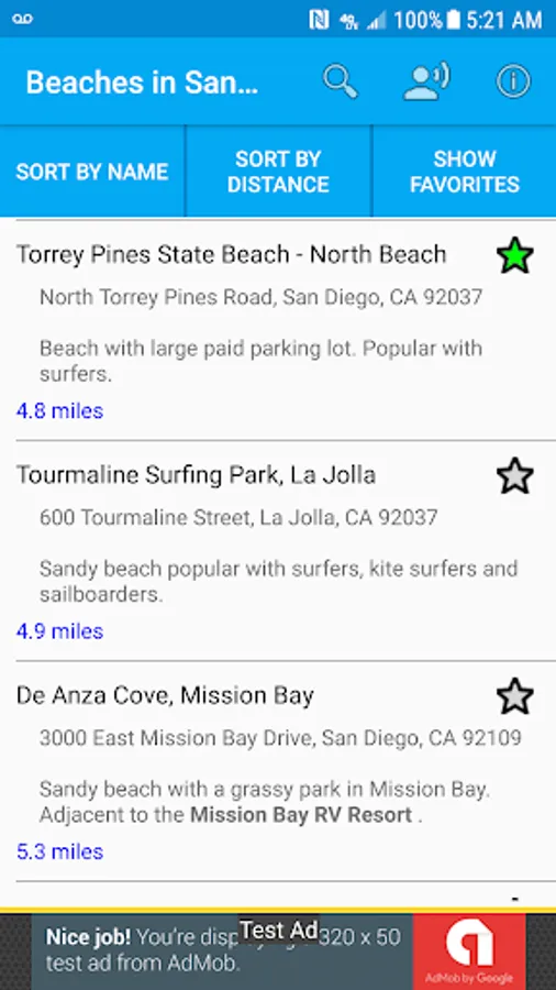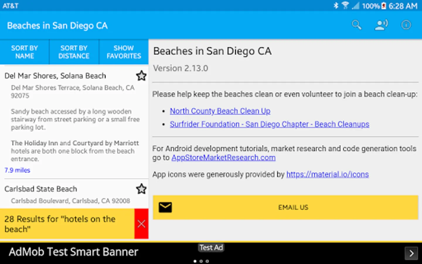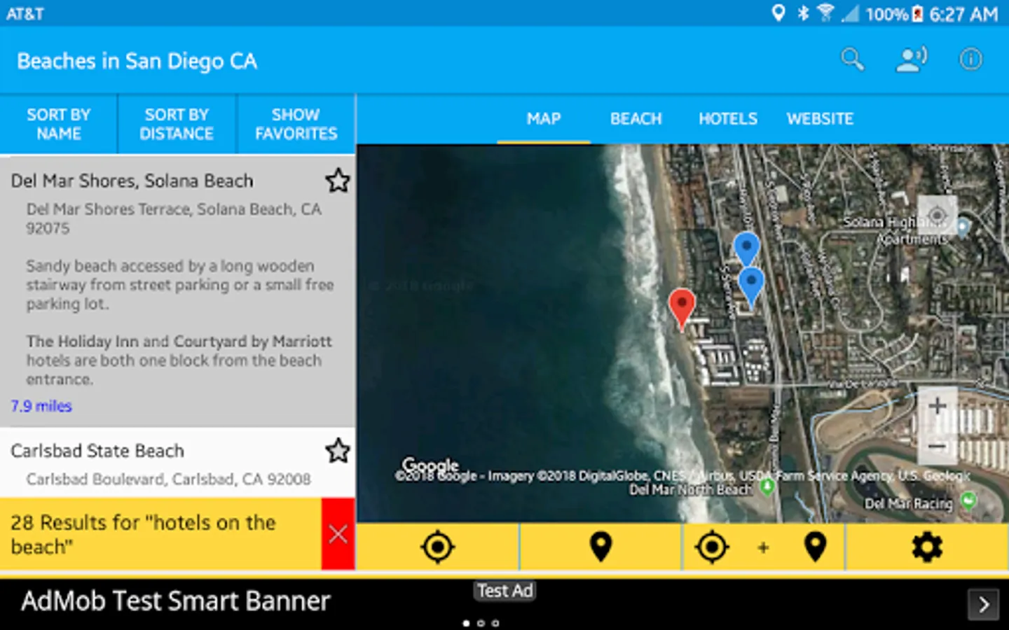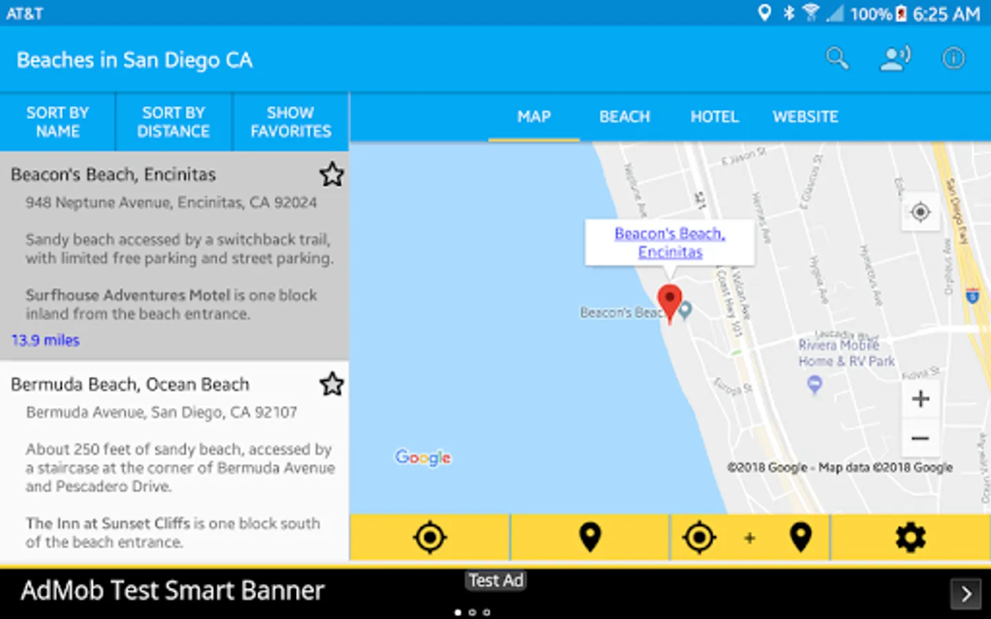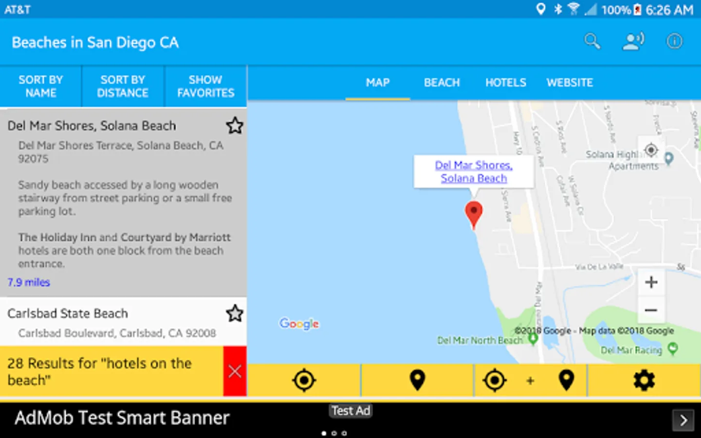The Beaches in San Diego CA app provides a list and in-app maps of more than 60 beaches. Some of the most popular include Mission Beach, Pacific Beach, Ocean Beach, La Jolla Cove and La Jolla Shores.