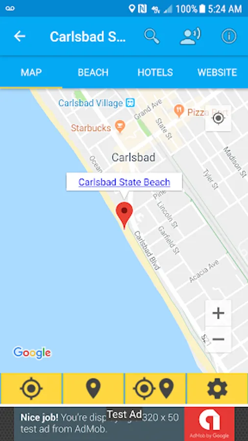 • Show marker groups - Use map settings to show hotels, campgrounds and golf courses near the beach