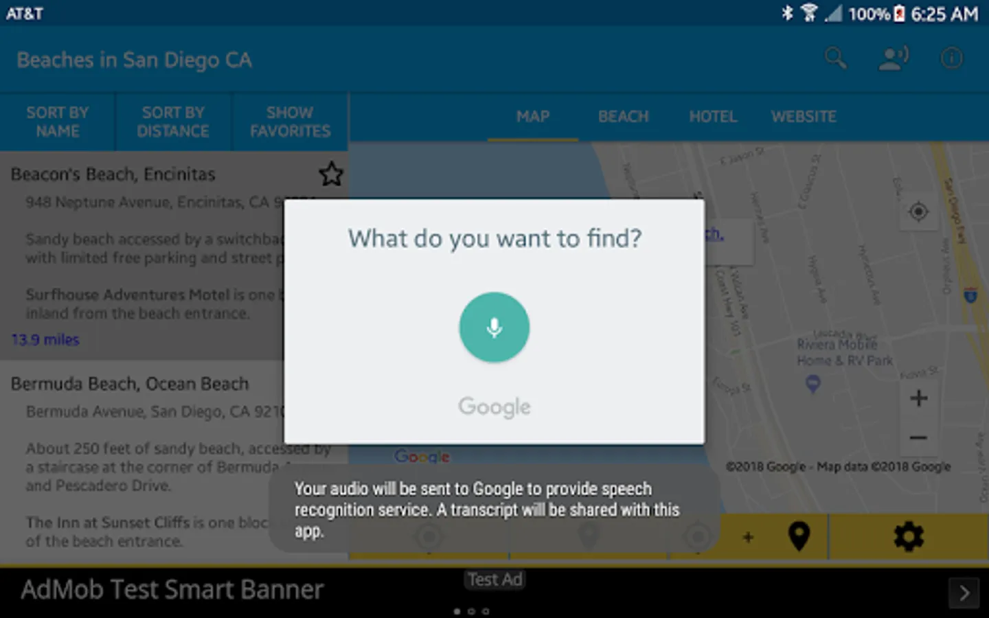 • To find hotels on the beach, use the speech recognizer or keyboard to submit the word "hotel" or "resort"