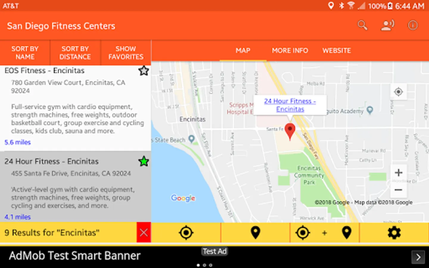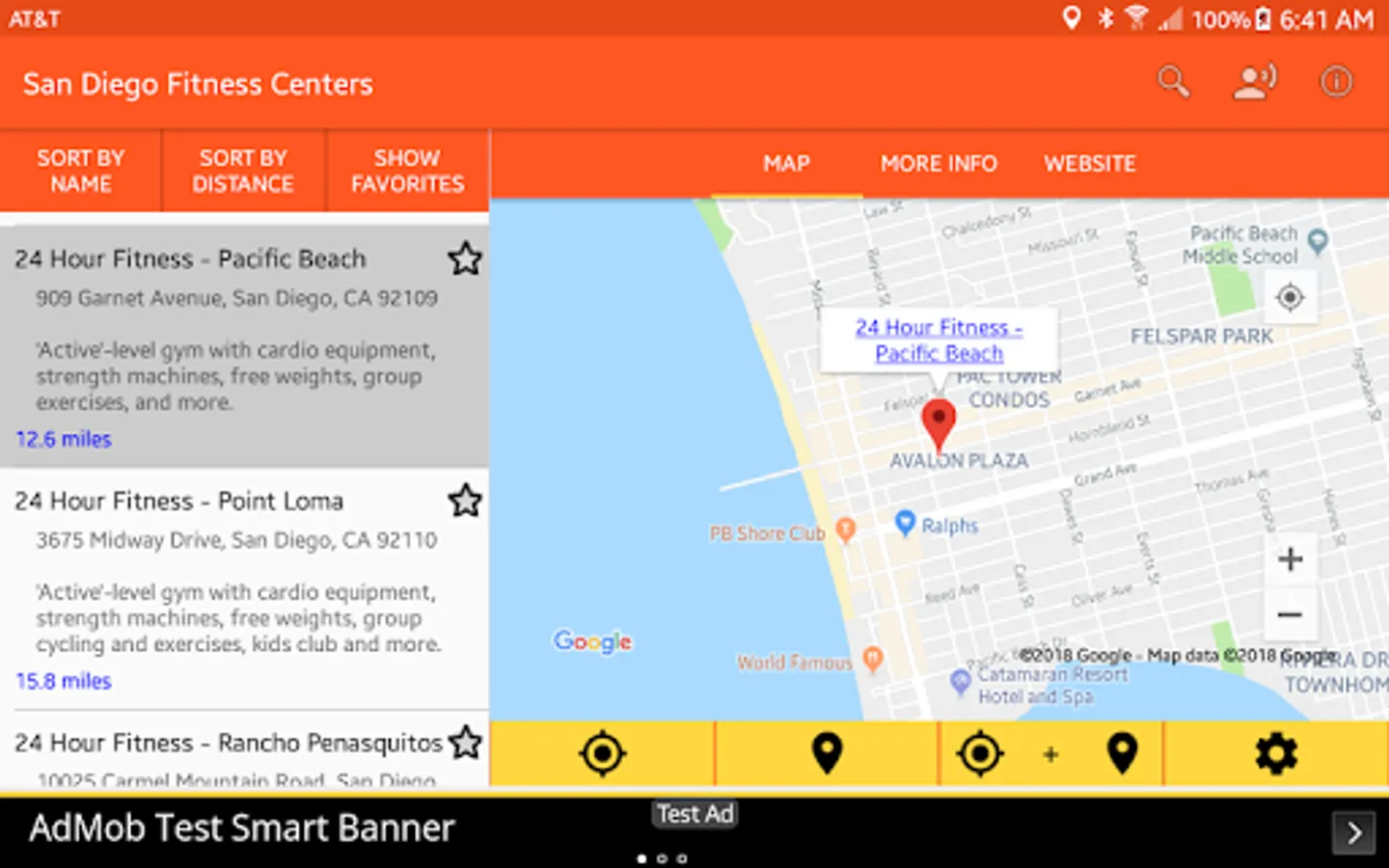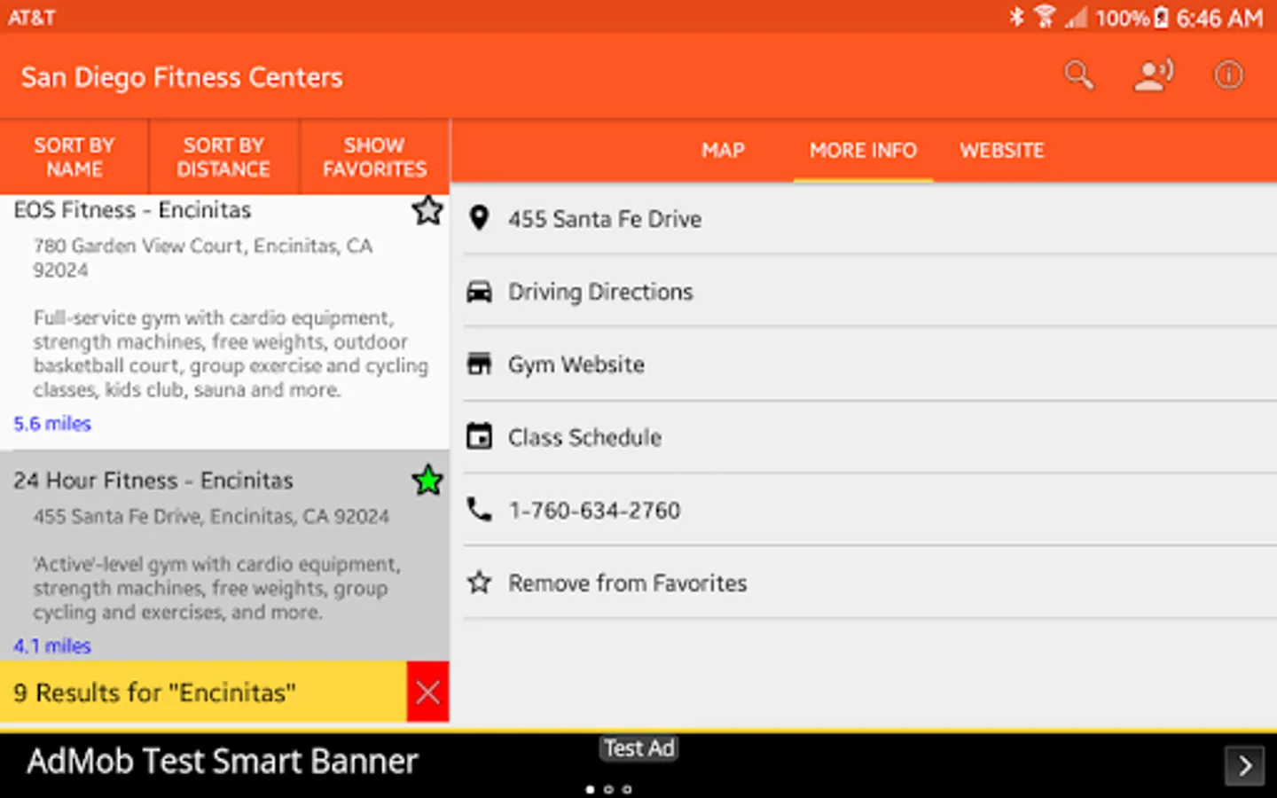 • List of fitness centers with street addresses, descriptions and distance to your location