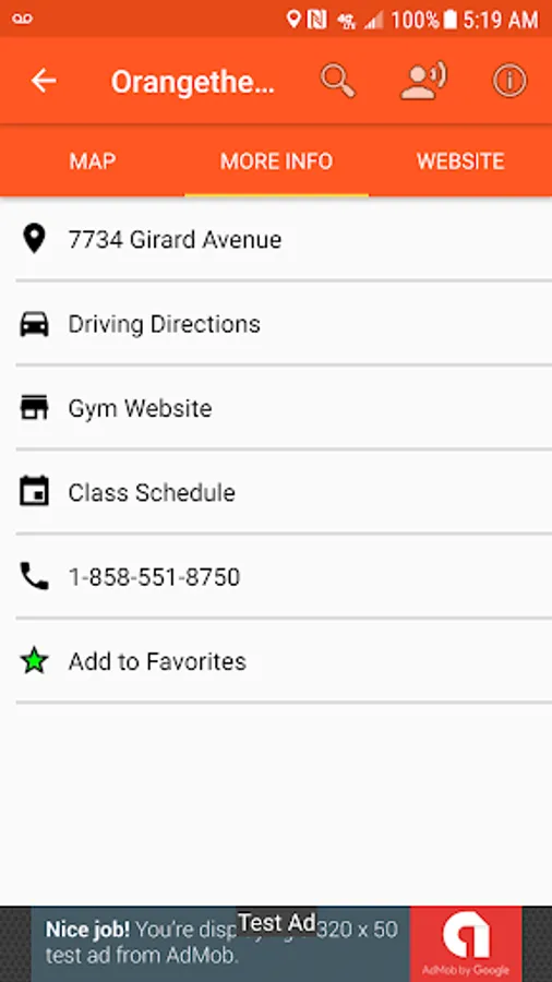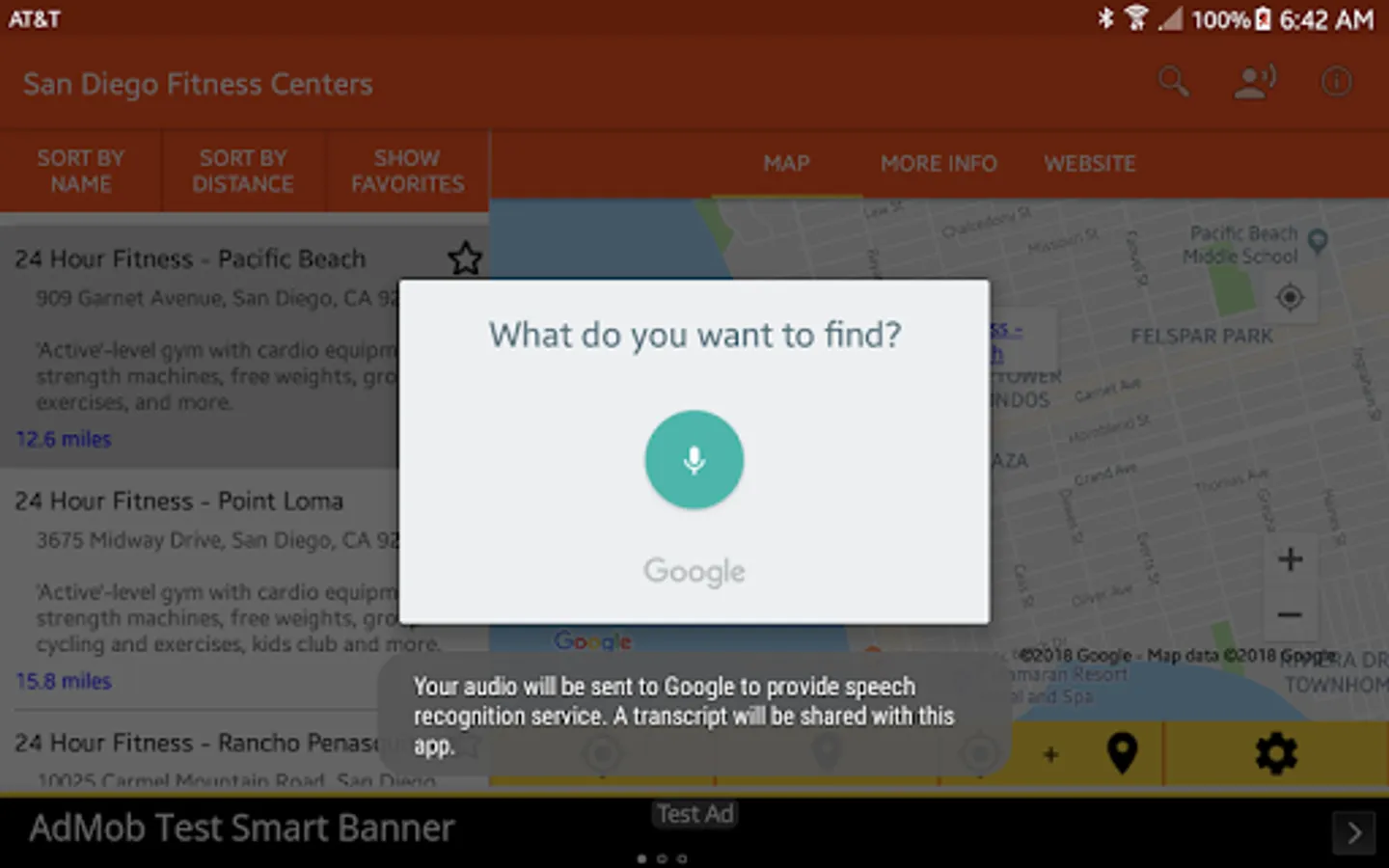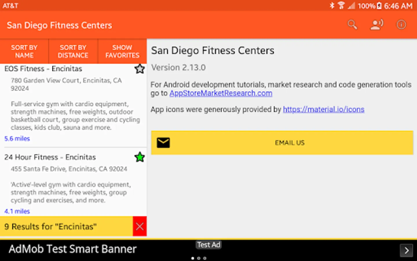 • List of fitness centers with street addresses, descriptions and distance to your location