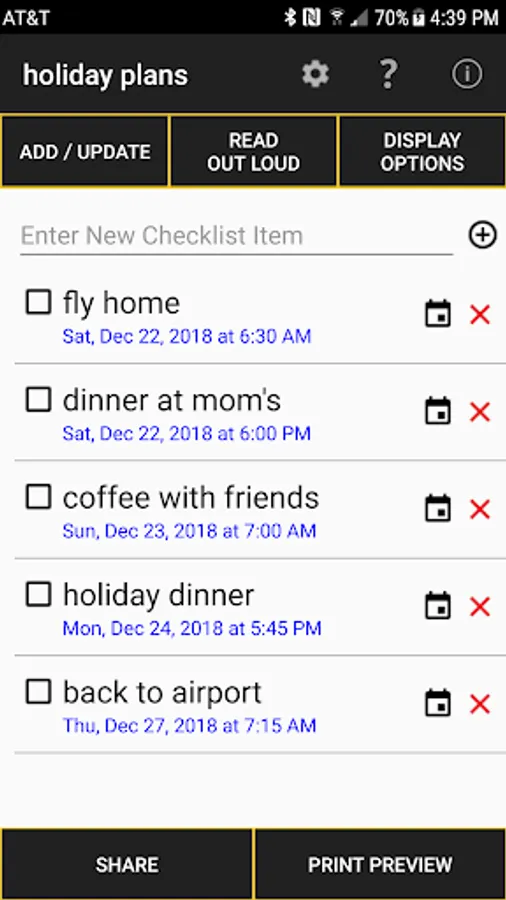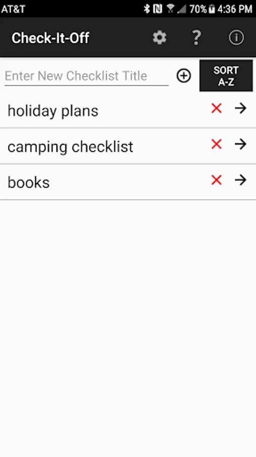 Use the Check-It-Off Checklist App to create grocery shopping checklists, travel/vacation checklists, moving checklists, camping/backpacking checklists, housecleaning checklists, and anything else you need to list and check off.