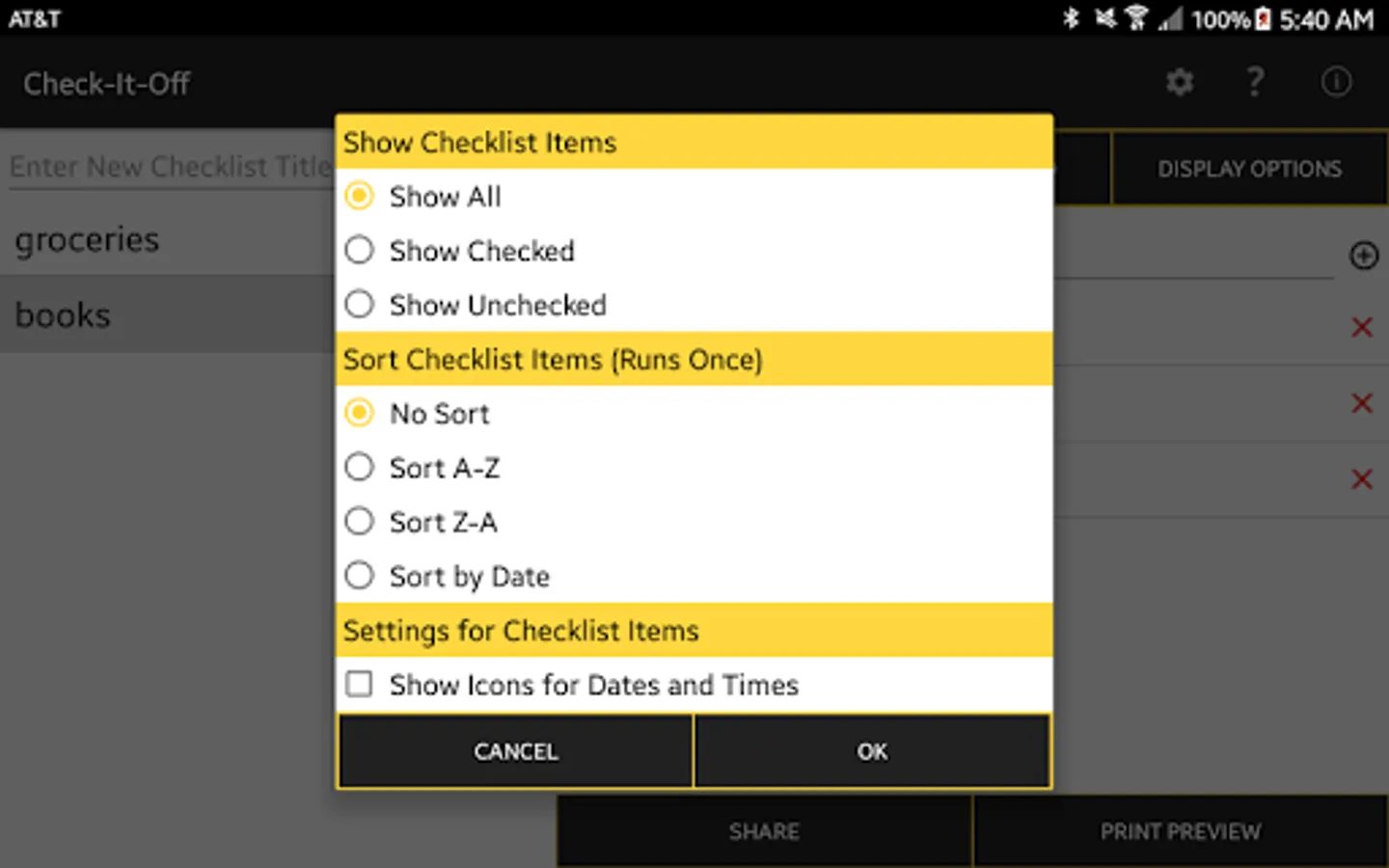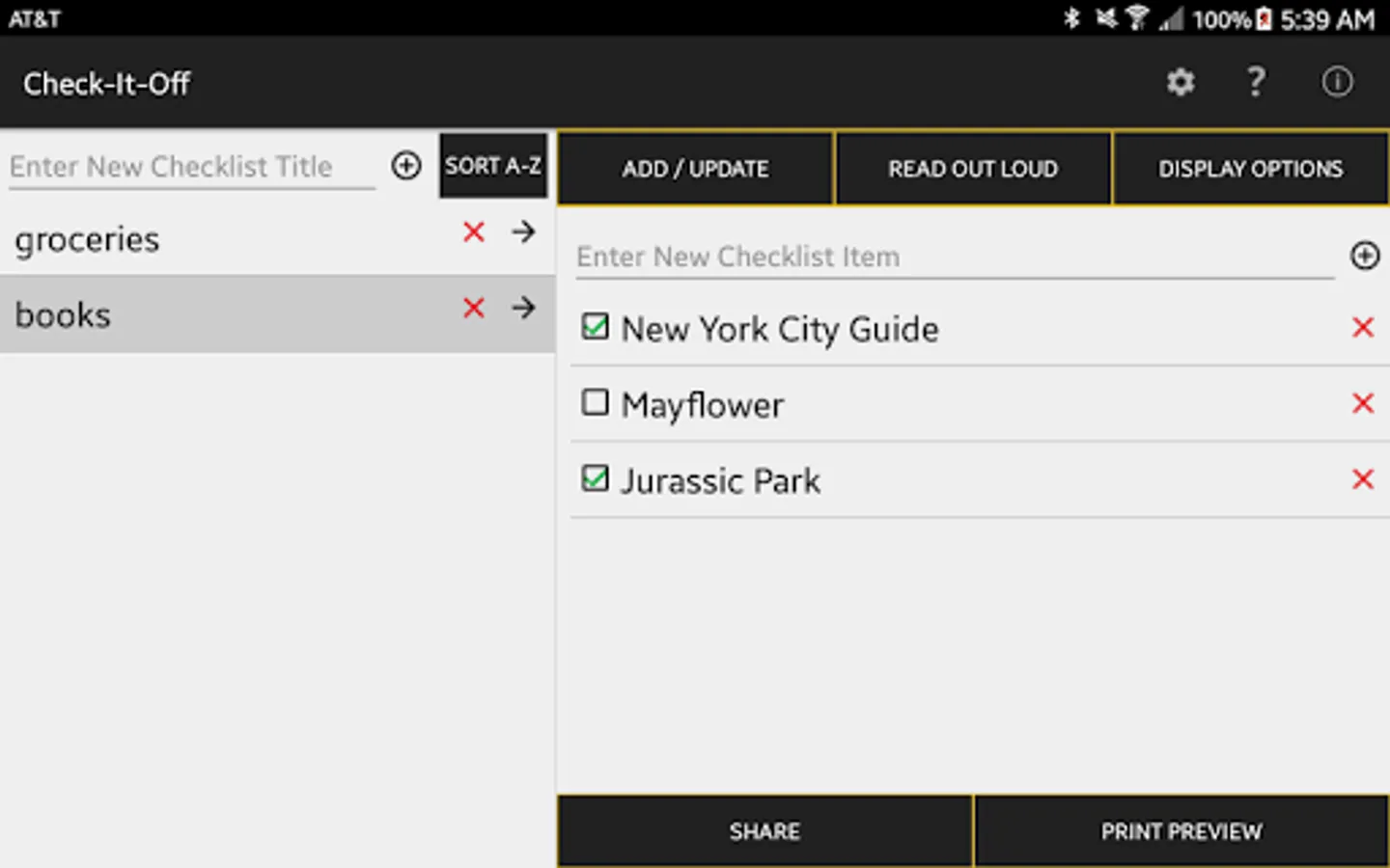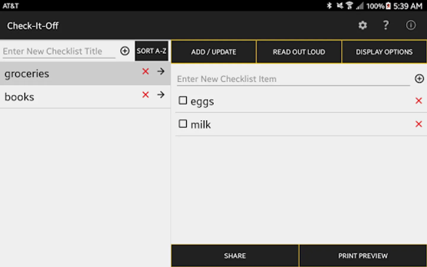 The basic version of the Check-It-Off Checklist App is free, works on both smartphones and tablets, and contains no advertisements.