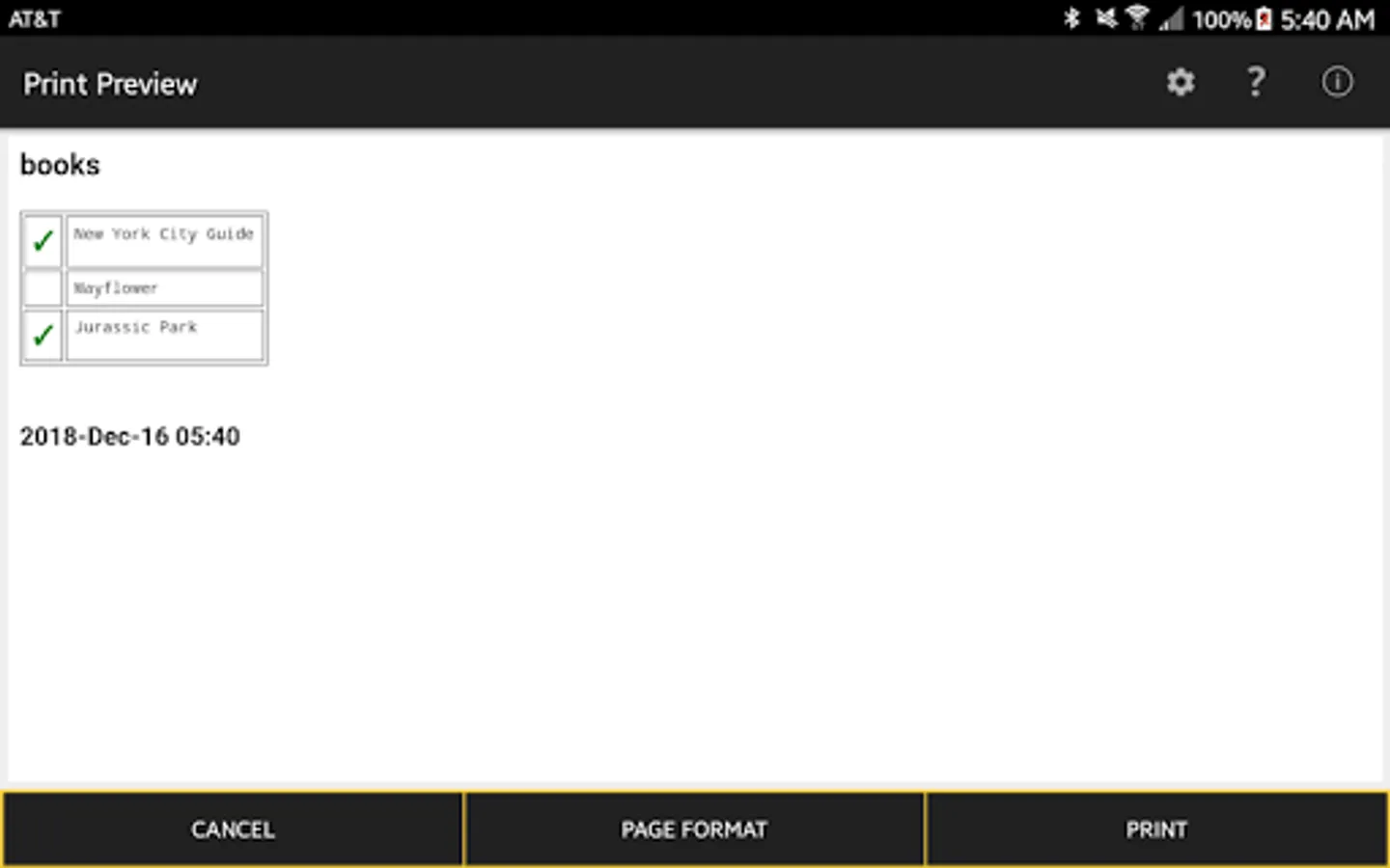 • Page format settings - Change the printable list's borders, text size, font family and the date/time footer