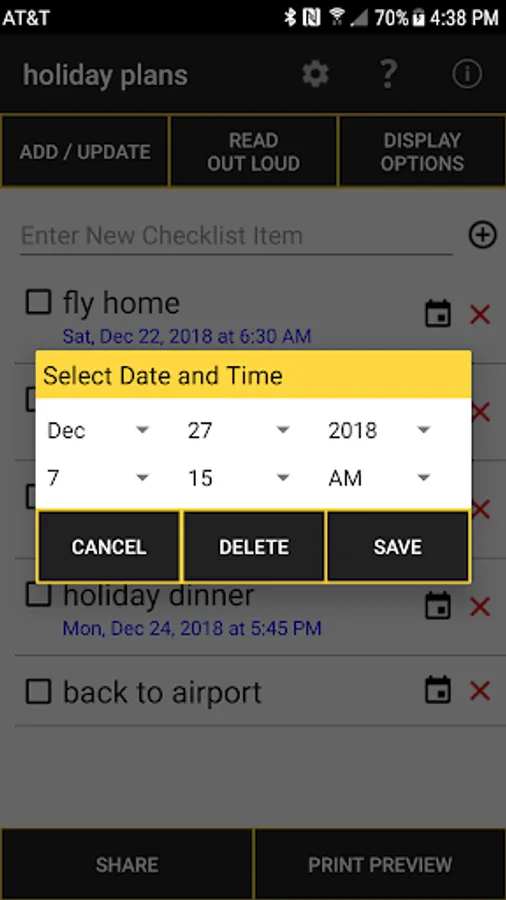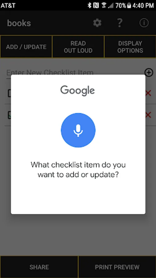 • Tell the app to read your checklists out loud, in any language installed on your device
