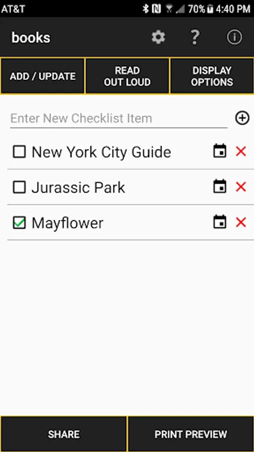 • Named checklists - Add as many checklists as you need, each with its own unique name