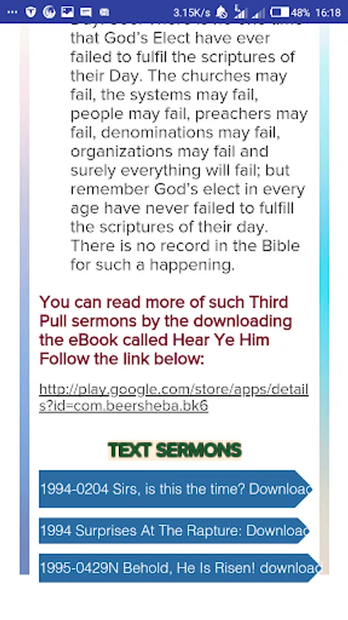 This app loads the Third Pull website which features sermons according to the promise the seventh seal foretold by herald William Branham.