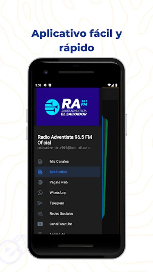 Radio Adventista 96.5 FM, under the slogan The Voice of the Eternal Gospel, began its transmissions in the year 1998 in the city of San Salvador, El Salvador and since that date it has not stopped preaching Salvation that we find in Christ Jesus, Broadcasting 24 hours a day from El Salvador C.A, a media outlet that offers varied programming for all audiences