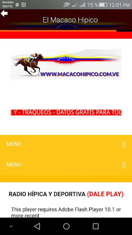 With this application you can hear the best transmission of horse racing Venezuela, from La Rinconada, Valencia and Santa Rita. You can access our website and read our www.macacohipico.com.ve @elmacacohipico Twitter account. Download and start using our app and enjoy the best choice in equestrian transmission Venezuela