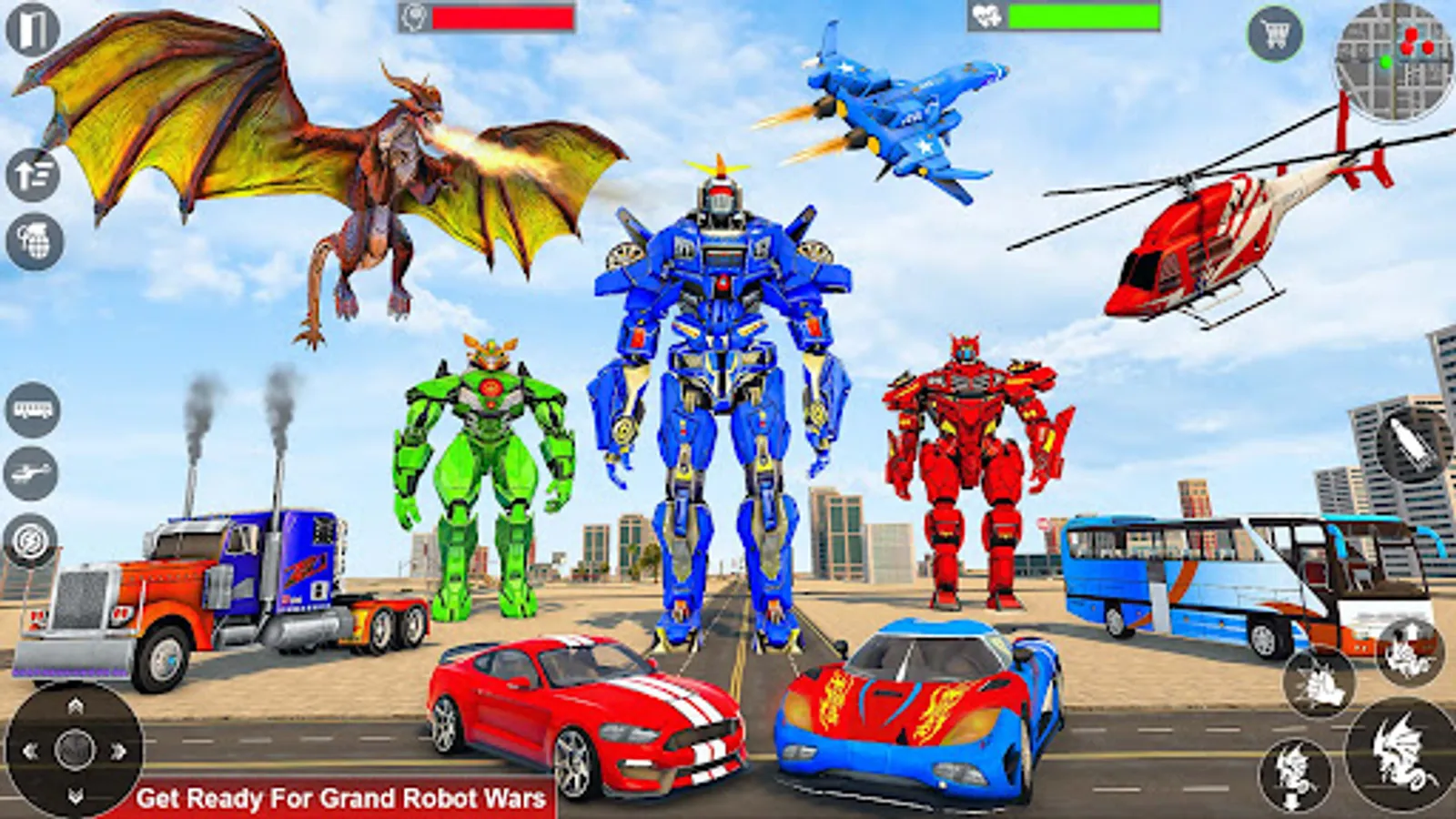 You are facing giant battle robots who are invading the planet to carry out their evil plans in optimus prime robot games and police dragon robot game. Land into battlefield of mega robot wars to survive till last and prove yourself the boss of the dragon robot game 2023. Do not waste your precious time to get realistic bus robot transformation games.