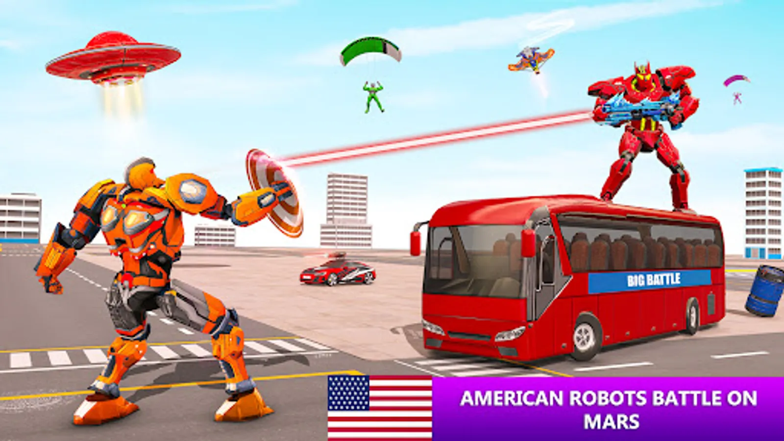 Welcome to the first ever Mars Battle Robot Game with robot transport missions. Bus robot game and car robot game offline is stylized action-adventure game. Get ready to stop the invasion of evil robots in this ultimate robot shooting game with spaceship wars. Land on evil areas of oil tanker robot games fighting in nonstop action-adventure games. This futuristic bus robot game ensures to stand on top among the other gorilla robot games and robot transformation games 2021. Mars robot battle begin on the planet Mars and you have to stop the alien robots of oil tanker robot games. Fight the space robot wars in this bus robot game to eradicate the enemy forces of car robot transport game.