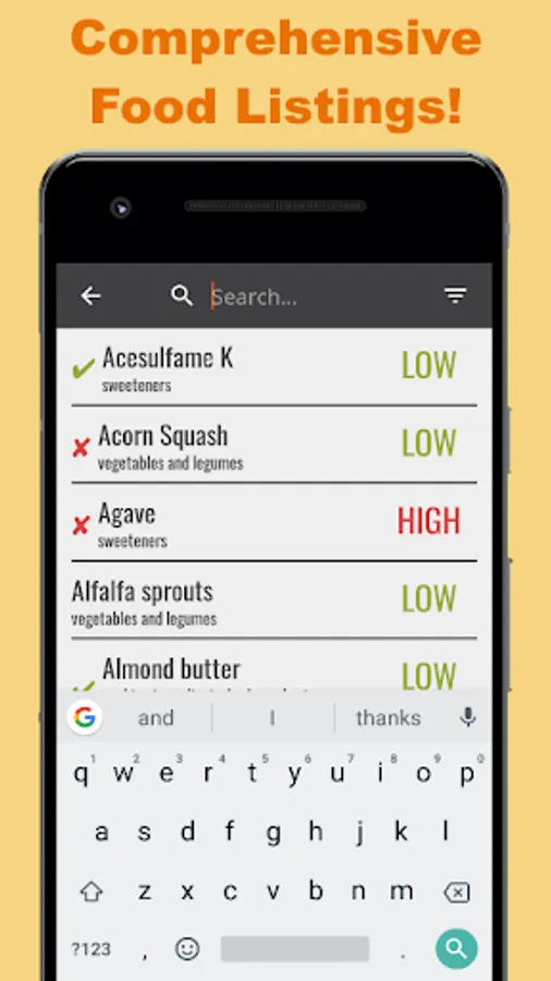 This app makes identification of high and low FODMAP foods easier to help you with your FODMAP friendly diet. This can be helpful in reducing symptoms for people with IBS, Irritable Bowel Syndrome, Crohn's disease, Colitis, Lactose Intolerance and various other food intolerances, food sensitivities, and stomach problems.