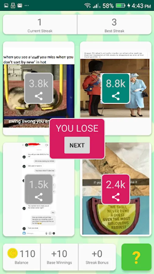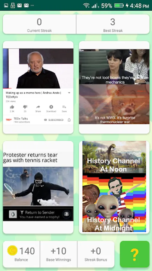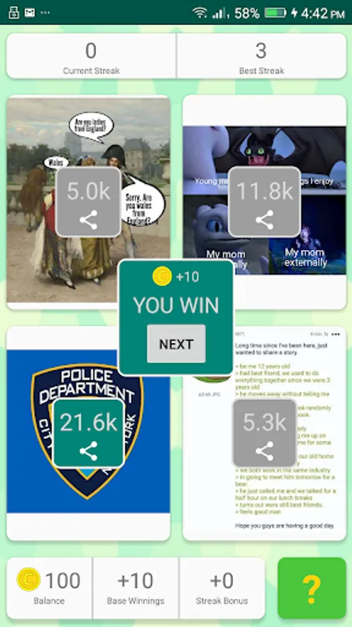 Pick the dankest meme out of a set of four and if your meme is the most highly upvoted you win!