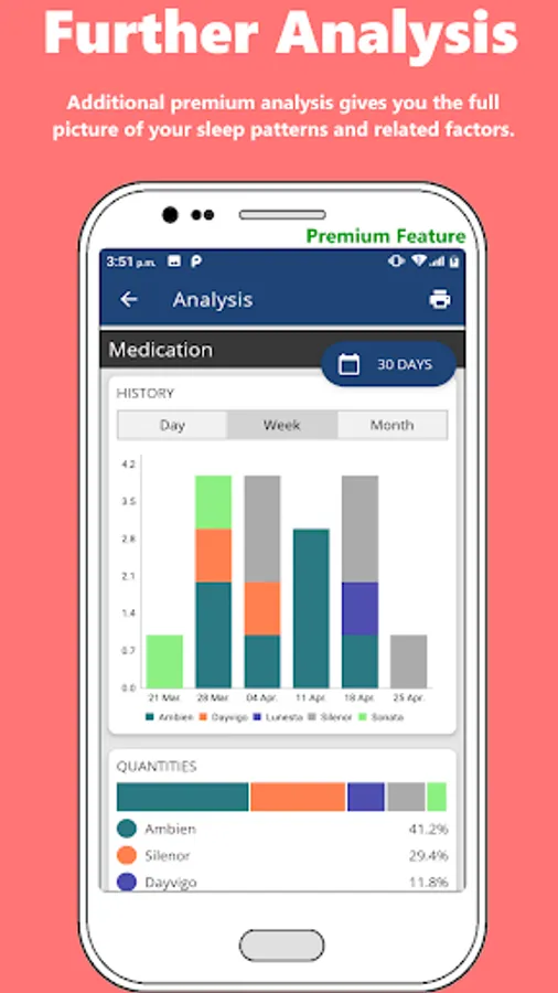 - Premium Medication Tracking to give you insights into whether medication is affecting your sleep patterns.
