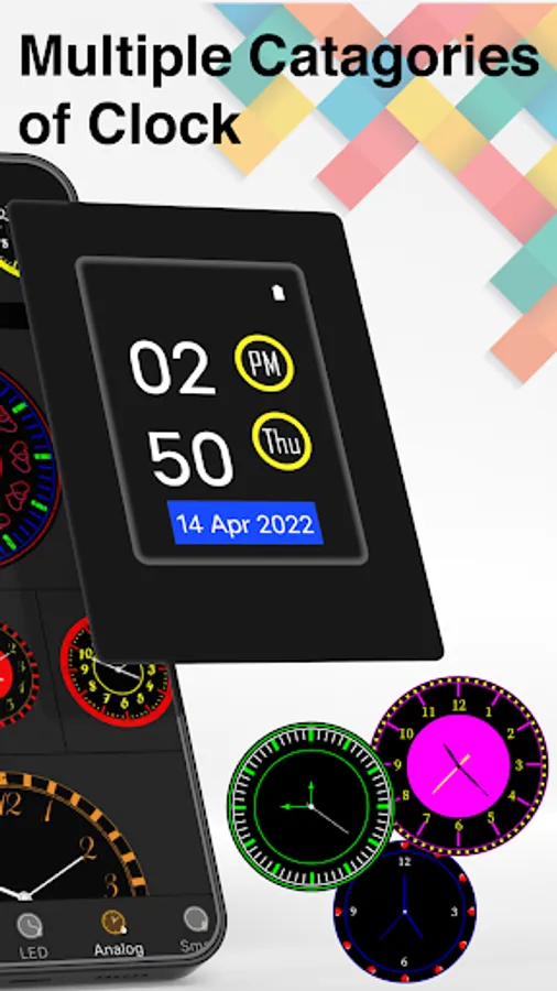 Analog Clock app contains not only analog but LED, digital, Emoji, and smart clock Wallpaper.