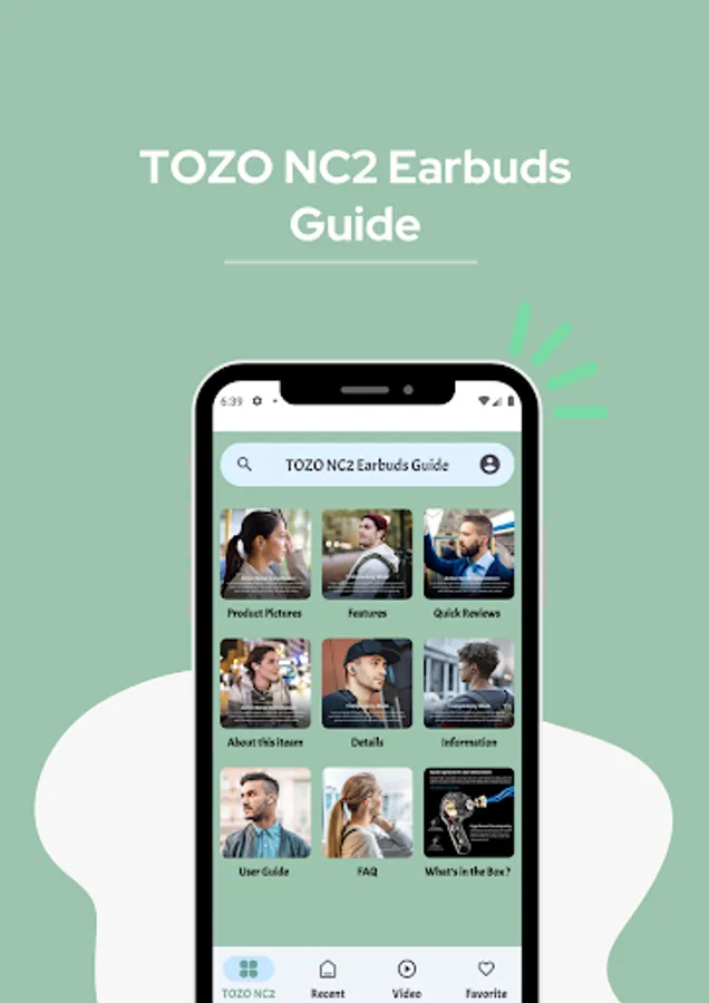 The application TOZO NC2 WIRELESS EARBUDS GUIDE provides you with huge information about TOZO NC2 HYBRID ACTIVE NOISE CANCELLING WIRELESS EARBUDS.