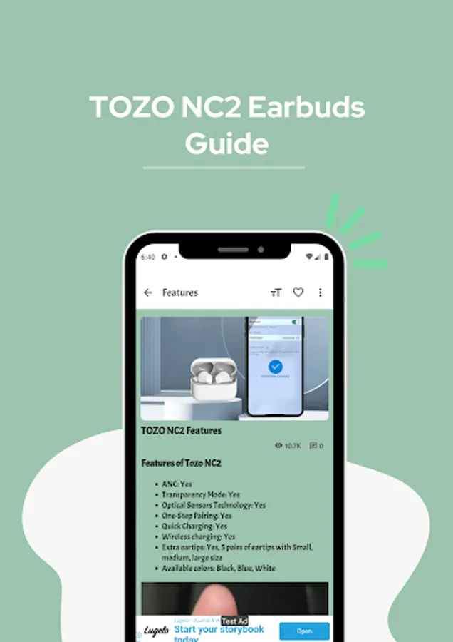 in TOZO NC2 HYBRID ACTIVE NOISE CANCELLING WIRELESS EARBUDS GUIDE app, we supported many sections of content that will let you now more information about TOZO NC2 WIRELESS EARBUDS
