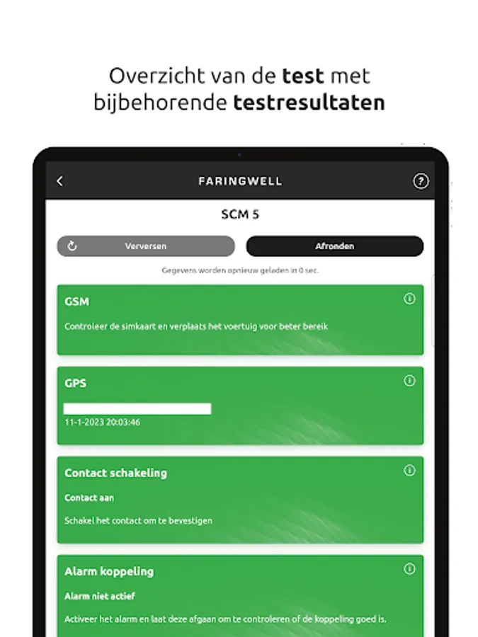 Provides 24/7 insight and control of the correct operation of an installed FARINGWELL tracking system. The Installer App provides all the necessary functions to complete a full system test. The App can only be used by authorized FARINGWELL partners with the dealer credentials issued to them by FARINGWELL.